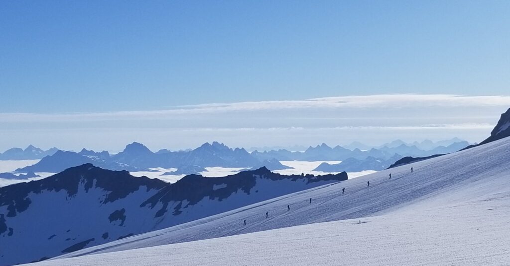 Day 3: It is time to apply the acquired skills on a summit climb! Most likely this will happen via the Coleman Deming route (unless the course takes place on the Easton Glacier side). Specific topics covered on Day 3: